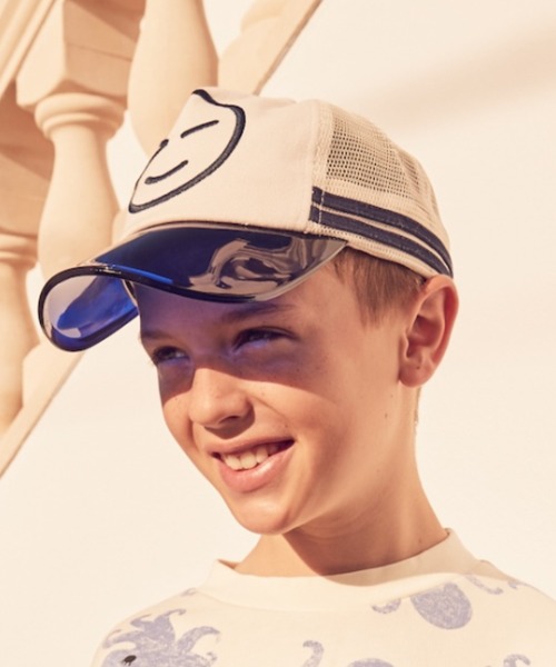 つば部分がサンバイザーになったキャップ。 個性的なデザインは、シンプルなコーディネートになりがちな春夏にアクセントに! 頭部の後ろはメッシュ素材なので、通気性が良く被れます。 【Wynken / ウィンケン】 レディース・メンズブランドで活躍してきたデザイナーが2014年にロンドンでスタートしたユニセックスの子供服ブランド。現代的で創造的なプロダクトを今の子ども達に向けて提案しています。モダンでコンテンポラリーなデザインは遊び心を感じさせ子ども達の感性に訴えかけます。高品質な素材にもこだわり動きの自由さと快適さを追求したユニセックススタイルのブランドです。