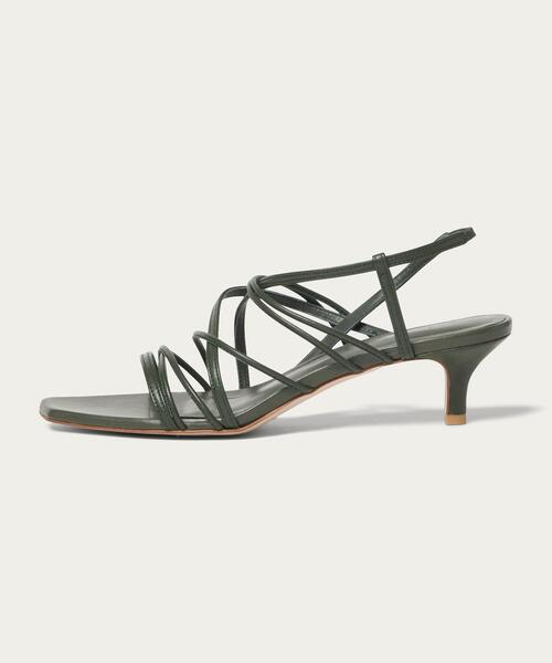 繊細なベルトデザインが印象的なサンダル■デザイン華奢な革紐が甲を美しく見せる繊細な一足。複数のベルトが交わるアッパーはホールド感がありながらも重たく見えず、抜け感のあるデザインです。足に合うようにベルトをずらして履けて、フィット感のある位置に微調整できるのも嬉しいポイント。高すぎない4.5cmの細ヒールがさりげなく女性らしい雰囲気を演出します。■コーディネート春先にはソックス合わせもぜひ。ソックスのカラーや素材感で遊んで、肌の透け感やベルトとのコントラストを楽しむのがおすすめです。・その他1カラーはパイソン型押しとベージュのコンビです。【注意事項】※画像の商品はサンプルです。実際の商品と色味、仕様、加工、サイズ、素材等が若干異なる場合がございます。※工場の生産の都合上、納期が変更になる場合がございます。発送日の前後についてはあらかじめご了承ください。※入荷状況により、お客様への発送が店頭販売より遅れる場合もございます。※商品画像は、光の当たり具合やパソコンなどの閲覧環境により、実際の色味と異なって見える場合がございます。あらかじめご了承ください。※ソールに保護シートが貼られている場合は剥がしてご使用下さい。※シューズの重量は、シューズ本体のみ両足の重量となります。箱や付属品は計測に含まれません。※商品に不良が無い場合、包装紙および箱の破損がございましても発送いたします。あらかじめご了承ください。店舗へお問い合わせの際は、全国のODETTE E ODILE各店舗まで下記の品名/品番をお申し付けください。品名:□OF ナローストリング SD45↑ 品番:45142931506