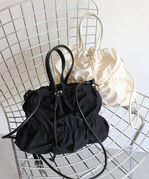 ギャザー使いが目を惹く2way巾着トートバッグ【デザイン】・本体にギャザーを寄せたトレンド感のあるデザイン・コーディネートのアクセントにおすすめ・ナイロン素材で甘くなり過ぎずオールシーズンお使いいただけます【機能】・ショルダー紐とハンドル付きの2way仕様・お出掛けの必需品が入るサイズ感・小物を分けて収納出来る内ポケット3箇所付き【素材】 ・程良い艶感のナイロン生地・水をはじきやすい生地を使用しています【スペック】・長財布(10×20cm):○・500mlペットボトル(タテ):×・500mlペットボトル(ヨコ):○・内ポケット:3・外ポケット:0・総重量:200g・ショルダー長さ:110cm【BRAND】COLDE /コルデカジュアルにトレンドをミックスした私らしいデイリースタイル。トキメク毎日を送りたい大人に向けたカジュアルブランド。【ATTENTION】※画像の商品はサンプルです。実際の商品と色味、仕様、加工、サイズ、素材等が若干異なる場合がございます。・画像の商品は光の照射や角度により、実物と色味が異なる場合がございます。また表示のサイズ感と実物は若干異なる場合もございますので、予めご了承ください。・雨や水などで濡れた場合は乾いた布で軽く拭き取り、陰干しで乾燥させてください 【INFORMATION】・商品のお気に入り登録お気に入りアイテムの値下げ・在庫1点・完売後の再入荷などの通知を随時受け取ることができます。・ブランドのお気に入り登録新商品の発売や再入荷、セール、クーポン配布などお得な情報を受け取ることができます。