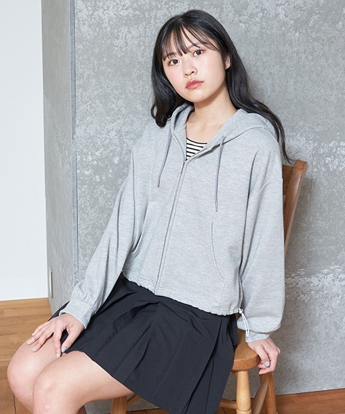 肌当たりの良い裏毛仕立てのジップパーカです。 装飾を控えたシンプルなデザインながら、裾にドローコードを配してトレンド感をプラスしました。 ドロップショルダーの抜けた表情で大人っぽい印象に。 刺しゅうの裏に「あて布」はございません。 【透け感】やや透ける 【生地の厚さ】普通 【伸縮性】あり 【裏地】なし 【ポケット】あり ※モデル画像は照明の関係により、実際よりも色味が違って見える場合がございます。 #中学生 #小学生 #高学年 #子供服 #ティーン #ガールズ #通学 #学校 #おでかけ #友達 #おそろい #テーマパーク #ダンス #遊び #塾 #習い事 #韓国 #推し活 #ライブ #コンサート #ラブトキ