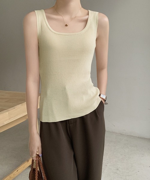 ベーシックで着回し◎色違いで欲しくなるリブタンク ■おすすめ着用シーズン:春服、夏服 ■素材:ポリエステル100% ■生地感:薄手ニット地 ■伸縮性:あり ■透け感:あり ■裏地:なし ■ポケット:なし ■その他仕様:- ※平置き採寸になります。若干の誤差が生じる場合がございます。 ※輸送時による、多少の汚れ・シワがある場合がございます。 ※撮影時のライティング、ご覧になっているモニター・PC環境により実際の商品と色味が異なって見える場合がございます。ご了承の上お買い求め下さい。