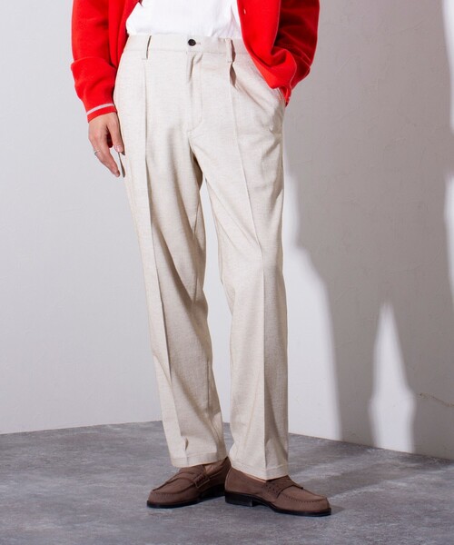 "ON/OFF使え、様々なシーンやスタイルにマッチ"センタープレス入りの1タックスラックスがデザインベースのイージースラックス。ウエスト後ろ半分がゴム仕様になった楽チン仕様。腰~モモ周りに膨らみとボリュームを持たせつつ、裾に向かって細く綺麗にテーパードストレートのワイドパンツに比べ、すっきりと見せることができ、且つスタイリングし易いので、太いパンツが苦手な方にもすんなりと取り入れ易いデザインとなっています。革靴やスニーカーで足元に変化を付け、ビジネスシーンや綺麗めスタイル、カジュアルコーデにも使い分けられる汎用性の高いボトムス。コンパクトなシルエットのカットソーやニット、シャツを合わせて、上品でキレイめな着こなしがおすすめ。是非、ワードローブの定番として揃えて頂きたいアイテムです。【GLOSTER/グロスター】“やさしさ・さわやか・童心" この3つの考え方をベースに、シンプルな中に着心地の良さがあり、誰かにちょっと褒められるようなストーリーが生まれる良質なデイリーユースアイテムを提案します。フレンチカジュアル、トラッドを基本として遊び心のあるディテール、色柄、サイジングなどでアレンジし、エイジレスでタイムレスな展開。GLOSTERは毎日がほんの少しでもHAPPYになれることを提供し続けます。※お取扱い上のご注意アテンションタグを必ずご確認の上、着用又はお取り扱いください。※店頭及び屋外での撮影画像は、光の当たり具合で色味が違って見える場合があります。※商品画像に関しては出来る限り忠実に表示出来るよう努めておりますが、お客様がご利用のモニターの設定及び特性により、実際の商品と比較し色味に若干の誤差が生じる場合があります。※画像の商品はサンプルとなりますので実際の商品と仕様、加工、サイズが若干異なる場合がございます。◇商品のお気に入り登録◇【お気に入りに登録】を是非ご活用ください。 再入荷の通知や、ラスト1点の通知、セールの通知がいち早く届きます。◇ブランドのお気に入り登録◇新商品や再入荷など、いち早くブランドのお得情報が届きます。