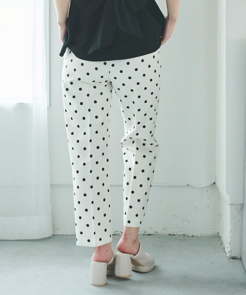 ◆◇◆2024 Spring/SummerCollection◇◆◇コーデのアクセントになるドット柄がキャッチーな大人かわいいテーパードパンツ。清涼感のあるきれいめ麻調合繊生地を使用し、程よくゆとりのあるテーパードシルエットでカジュアルにもキレイめにも着こなしていただけます。ペプラムシルエットのデザイントップスとのコーデやTシャツとのカジュアルミックスコーデが今期らしくてオススメです。・‥…━…‥・‥…━…‥・‥…━…‥・‥…━…‥・‥…▼サイズ36/ウエスト65.0cm、ヒップ100.0cm、股上丈34.5cm、股下丈64.0cm、わたり巾31.0cm、裾巾19.0cm38/ウエスト69.0cm、ヒップ104.0cm、股上丈35.0cm、股下丈67.0cm、わたり巾32.4cm、裾巾20.0cm▼ファブリック-----------------------------透け感: なし伸縮性: なし裏地:ホワイトのみあり 光沢:なし生地の厚さ:普通洗濯:ドライクリーニング-----------------------------※サイズ表記につきましては、商品によって同サイズや同色等であっても各商品毎に誤差が生じる可能性がある為、サイズ表記はあくまでも目安としてご参照ください。※モデル着用アイテムはサンプル商品の為、実際よりサイズや色が異なる場合がございます。サイズはサイズ詳細等にてご確認下さい。※モデル着用カラーは、撮影環境の兼合いにて、実際のカラーと異なって見える場合がございます。商品カラーに関しましては、物画像をご参考ください。※取り扱いについては、商品についている品質表示でご確認ください。※商品画像はサンプルのため、色味や仕様変更がある場合がございますので予めご了承ください。※画像と柄の位置が異なる場合がございます、ご了承下さい。※撮影の照明状況やパソコンなどの環境により、若干製品と画像のカラーが異なる場合もございます。予めご了承ください。