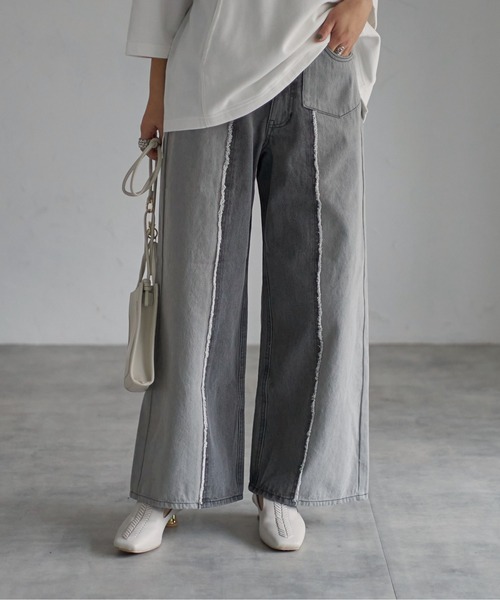 センターシームがフリンジになった着映え力の高いワイドデニム ■Detail シンプルなワイドシルエットのデニムパンツ ストーンウォッシュ加工でビンテージ感があり履くだけでこなれ感の増す1枚 センターシームにフリンジをあしらいクセのあるデザインに シンプルなトップスと合わせるだけでもコーディネートが完成する1枚です 腰回りはすっきりと、裾にかけてストンと落ちるシルエットで ワイドながらボリュームが出過ぎずキレイ目にもカジュアルにも着こなせます ■Styling どんなトップスとも合わせやすいシルエットです カジュアルなパーカーやロゴTとの合わせはもちろん キレイ目なとろみのあるブラウスやジャケットと合わせても◎ ■Material ウォッシュ加工をかけたデニム素材です 最初は少し固めですが履きこなしていくうちに柔らかく馴染みます 裏地:なし 透け感:なし 伸縮性:ややあり 生地の厚さ:普通 ※詳しいお手入れ方法は商品タグをご参照ください。 デニム/ウォッシュデニム/フリンジ/フリンジ加工/センターシーム/ストーンウォッシュ/ワイドデニム/デイリー/高見え/ シンプル/着回し/春/夏/きれいめ/きれいめカジュアル/カジュアル/オトナカジュアル/大人カジュアル/高級感/華やか 【Information】 ◆《お気に入り登録》がオススメ◆ ・「商品のお気に入り登録」で再入荷通知や、ラストの通知、セール通知も受け取ることが出来ます。 ・「ブランドのお気に入り登録」で新商品や再入荷など、お得な情報を受け取ることが出来ます ※撮影時のライティング、ご覧になっているモニター・PC環境により、実際の商品と色味が異なって見える場合がございます。予めご了承をお願い致します。 ※ご注文いただいた予約商品のお届け時期の確認は、注文履歴ページより行えます。