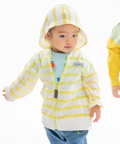 フード着脱式でシーンに合わせて着方を選べる長袖パーカです。 薄手の素材感で、盛夏の日除け対策におすすめの一着。 男女共にぴったりのデザインなので、きょうだいお揃いでも楽しめます。 胸にはロゴの織りネームを添えて、さりげなくブランドをアピール。 接触冷感機能が備わっており、暑い季節も快適に着用できます。 内側にはお名前を記入できるタグつき。 【透け感】やや透ける 【生地の厚さ】薄い 【伸縮性】あり 【裏地】なし 【ポケット】あり
