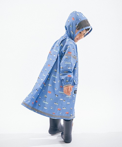 雨の日のお出かけに持っておきたい総柄レインコートです。黄は恐竜、ブルーグレーは乗り物を主役にデザインしました。 背中のプラボタンを外せばマチが開くため、リュックを背負ったままでの着用も可能。 はっ水加工やリフレクター(袖:プリント/裾:テープ)、お名前ネームなどあるとうれしい工夫が満載です。 フードは透明素材の切り替えを入れており、視界も確保できます。 持ち運びにうれしい収納袋つき。 【透け感】透けない 【生地の厚さ】普通 【伸縮性】なし 【裏地】なし 【ポケット】あり