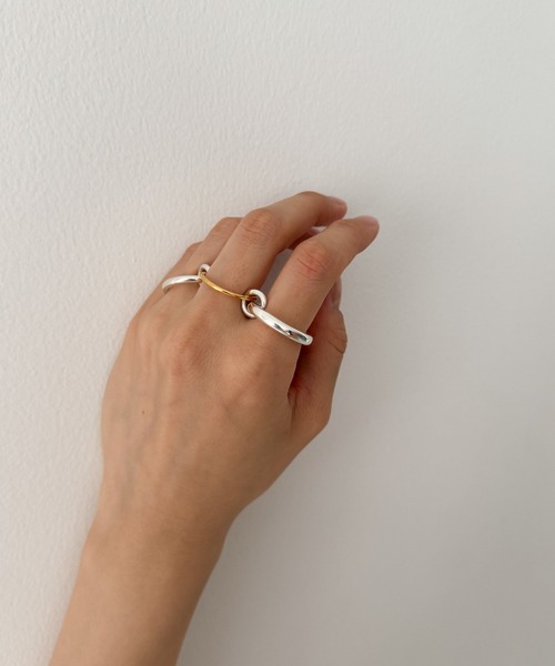 デザイン 1本の指に重ね付けはもちろん、3本の指に付けてもご使用いただける2way仕様。 太さの異なる3本が連結されているので、付けるだけでニュアンス感が出るリングです。 コーディネート 単品でもボリューム感があり、アクセントになるので綺麗めからカジュアルまで様々なシーンで活躍してくれます。 【アクセサリーのお手入れ方法について】 空気中に含まれる成分や汗、皮脂などに反応し、時間の経過に伴い変色する事があります。 ご使用後は柔らかい布などで拭いて頂く事によって長くご愛用頂けます。 ※照明の関係により、実際よりも色味が違って見える場合があります。またパソコン・スマートフォンなどの環境により、若干製品と画像のカラーが異なる場合もございます。 ※商品の色味は、商品アップ画像をご参照ください。