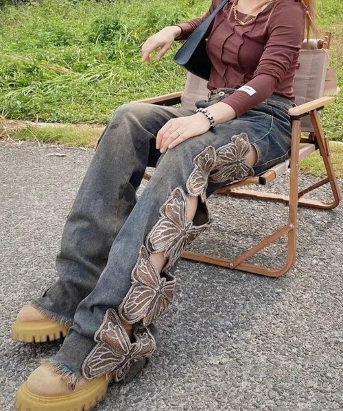・ビンテージの様な加工感がコーディネートを格上げしてくれる、インパクト強めなデニムパンツ! ・足元はパンツのインパクトに負けない、ボリュームのあるブーツやスニーカーで。 ・トップスにはミニTシャツやタイトなキャミソールなど、Y2Kっぽいコンパクトなアイテムでコーデして。 ※モニター・環境等により実際の商品と多少色味が異なって表示される場合がございます。あらかじめご了承ください。 ※海外輸入品のため、商品の入荷時期によって色合い、生地、デザイン等に若干の違いがございます。 商品の細部仕様は予告なく変更になる場合がございます。 汗や雨に濡れたまま長時間放置すると、他の物に色移りする恐れがありますのでご注意ください。 着用中の摩擦により、色移りすることがありますのでご注意ください。 淡い色の衣類との重ね着には十分ご注意ください。 この製品は染色の性質上、色落ち・色移りする場合がありますので、単品で洗濯してください。 洗濯の際は、色移りの恐れがあるため単独洗いをおすすめします。 湿った状態での他の衣類との接触は避けてください。