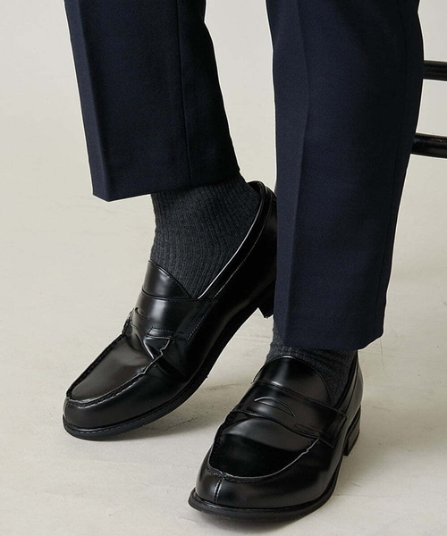 ビジネスでもカジュアルでも使えるコインローファータイプでベーシックなデザインです。つま先部分は細身のシルエットでスラックスやビジネスシーンのテーラードセットアップスタイルにも最適な、見た目もシャープな雰囲気の1足です。