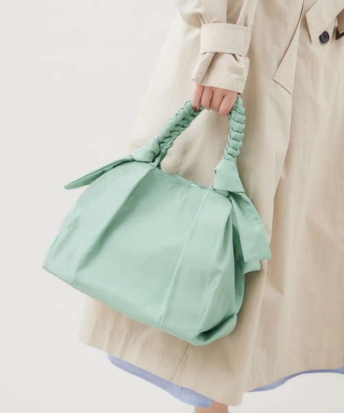 【KATAHRINE ROSSセレクト】 編み込まれたハンドルがポイントのナイロンバッグ コロンとした可愛らしいフォルム。サイドのナス管で丸みのあるフォルムにできます。 ベーシックなグレージュとスタイリングに華やかさをプラスしてくれるイエロー、ミントの3色展開。 必需品がしっかり入るデイリー使いにうれしいサイズです。 インナーポケットも充実しているので、中身も整理整頓しやすいです◎ [取り出し口] マグネットボタン [ポケット] インナーポケット2つ