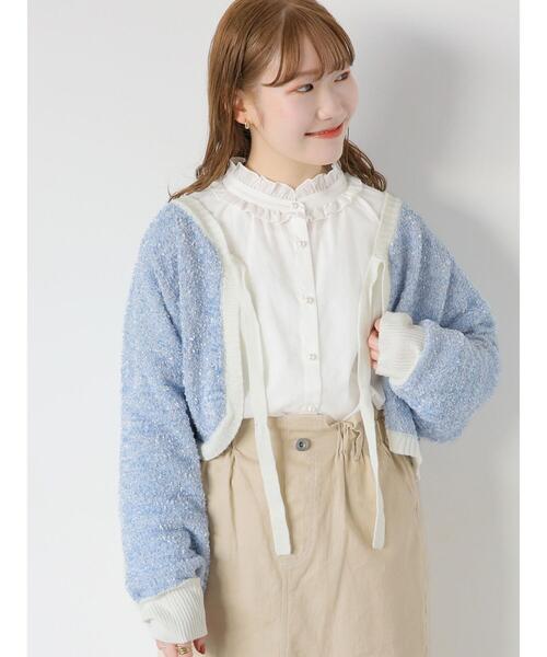 ふわふわとしたリボンヤーンが愛らしさを演出するボレロ。胸元で結ぶリボンもキュートなアクセントをプラスします。配色切り替えがメリハリ感のある印象に。コンパクトな着丈でバランスよくスタイリングでき、ワンピースと合わせたコーディネートがおすすめです。※商品画像は、撮影環境やお客様のご利用のPC・スマートフォンのモニター環境などにより実物と色味に差異がある場合がございます。