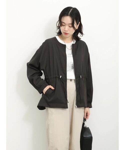 ウエストドロストがポイントになったブルゾン。 そんなアイテムとも合わせやすいシンプルなノーカラーで、すっきりとした印象に仕上げました。 ドロストを絞ることでメリハリのあるシルエットを生み出し、脚長効果が期待できるのも嬉しいポイント。 シンプルなデザインで着回しやすい、ワードローブの頼れる味方です。 ※商品画像は、撮影環境やお客様のご利用のPC・スマートフォンのモニター環境などにより実物と色味に差異がある場合がございます。 【その他採寸】 F 着丈:[前]63cm[後]66cm