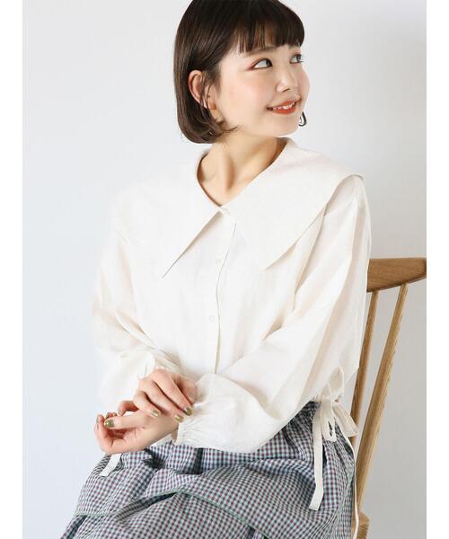 ビッグ襟で大人可愛いデザインに仕上げたブラウス。 裾のドロストを絞ることで、シルエットのアレンジが楽しめるのも魅力。 ショート丈でバランスよくスタイリングすることができます。 コーディネートを愛らしく演出してくれるアイテムです。 ※商品画像は、撮影環境やお客様のご利用のPC・スマートフォンのモニター環境などにより実物と色味に差異がある場合がございます。