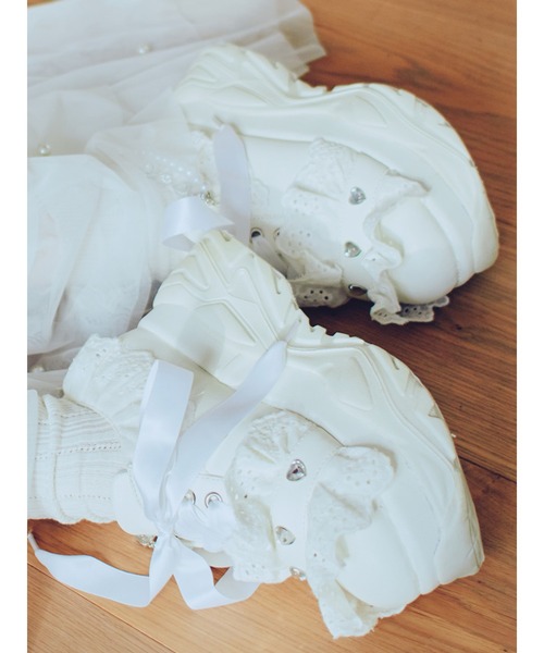 フリルが付いて、ガーリーニュアンスが高まるスニーカーの登場です♪ フリルやリボンなどのモチーフが、デザインされて、上品&可愛らしさが増し、スタイリングの好アクセントになります。ビジューやパールが、ほどこされて、きらびやかさがUP◎ ソールが厚く、高さがありながら、安定感があり、レッグラインをキレイに、魅せてくれる逸品です☆ チェーン取り外し可