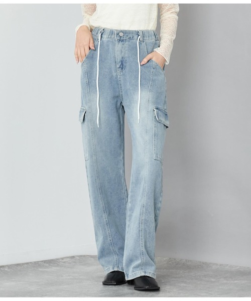 着まわしやすいデニムを抜け感のある雰囲気に格上げするカーゴデザインで仕上げたパンツ。 程よく太さのある裾とすっきりとしたウエストのシルエットがカジュアルすぎない上品さを残した印象に。 ウエストはドローコード付きのためお好みのサイズに調節して着用いただけます。 サイドのポケットがポイントになり、シンプルなトップスと合わせても個性が出るスタイリングになります◎ 足元はスニーカーはもちろん、ヒール合わせで女性らしさをプラスしたスタイリングもおすすめです。 ※ストレッチなし※裏地なし ※ポケットあり※ウエスト紐で調節可能 ※デニムの為、一点一点風合いが画像と多少異なる場合がございます。予めご了承ください。 ※この商品は非常に色落ち、色移りしますので十分ご注意ください。 ※商品のお取扱いに関しましては、商品に付属のアテンションカード、洗濯ネームをご覧ください。 ※モデル着用画像は光の当たり具合で色味が違って見える場合がございます。 【お買いものをお楽しみいただく為に!】 ▼商品のお気に入り登録 完売カラーの再入荷通知や、ラスト1点の通知、セールの通知も受け取ることができます。 ▼ブランドのお気に入り登録 新商品や再入荷など、いち早くブランドのお得な情報を受け取ることができます。