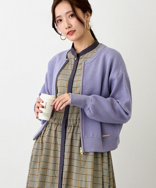 新色揃えて再登場。使い勝手の良いスエットライクニットブルゾン人気のニットジップブルゾンが、新色+チェックを揃えて再登場。Wジャガード織りで、きちんと感ある上品な印象のニットジップカーディガン。旬なコンパクト丈が、羽織るだけで今年らしいコーデイネートの仕上がります。ベーシックなので、巾広いシーンで活躍してくれるオススメアイテム。サックスは、さりげなく衿裏と袖口裏を配色に。オフ・ネイビーは、バイカラーデザイン、合わせやすいモノトーンチェックでオシャレ度UP。-------------------------■透け感:なし■裏地:なし■伸縮性:あり■光沢感:なし■生地の厚さ:普通-------------------------☆★お買い物をお楽しみいただく為に★☆★商品のお気に入り登録完売カラーの再入荷通知や、ラスト1点の通知、セールの通知も受け取ることができます。★ブランドのお気に入り登録新商品や再入荷等、ブランドのお得な情報をいち早く受け取ることができます。