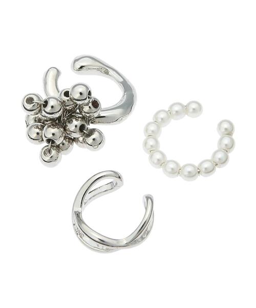 異なるデザインのイヤカフ3点セット。揺れるメタルボールが華やかな存在感をプラス。シンプルなデザインと組み合わせることで、重ね付けしやすいのも嬉しいです。セットでも単品使いでもコーデが楽しめるアイテム◎ ●製品寸法:F:全長約2cm 幅最大約4mm備考: