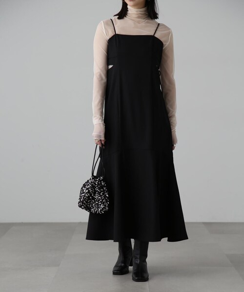 【fabric&design】サイドに施したカットラインで抜け感をプラスしたキャミワンピース。 サイドリボンの結び具合で、サイドカットの開きを調整できます。 バックデザインにリボンポイントを施し、トレンド感をプラス。 ストラップの長さが調整可能なのも嬉しいポイントです。 今年は無地ブラック、#モノトーンギンガムに加え、#グリーン×ブラックのモードなチェックの登場で、よりカジュアルな着こなしを楽しんでいただけます。 【styling】 まだ寒い時期にはリブニットなど、春先からはトレンドのシアートップスやTシャツなど、合わせるトップス次第でシーズンレスにお楽しみいただける1枚です。 ■透け感:なし ■生地の厚さ:普通 ■裏地:あり ■伸縮性:なし ■光沢:ややあり ■シルエット:スタンダード model:骨格ウェーブ --------------------------------------------------- ◆商品のお気に入り登録◆ お気に入りアイテムの値下げ・再入荷・在庫1点などの通知を受け取ることができます。 ◆ブランドのお気に入り登録◆ 新商品や再入荷、セール、クーポン配布などお得な情報を受け取ることができます。 --------------------------------------------------- ※ご注文いただいた予約商品のお届け時期の確認は、注文履歴ページより行えます。
