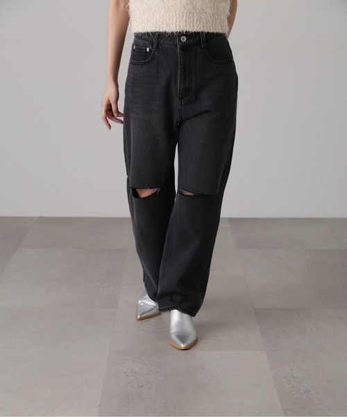 <fabric&design> 程よいゆとりのあるストレートシルエットのデニムです。 膝上にカットオフを施し、抜け感とカジュアル感を強めに仕上げました。 着用時、ニーカット部分に足をひっかけないようご注意ください。 バイオウォッシュの#ブラック系その他と、加工感強めの#ケミカルウォッシュの2色展開、ヴィンテージライクでこなれた印象です。 <styling> チュールや甘めトップスとの甘辛ミックスコーデにおススメです。 ■透け感:なし ■生地の厚さ:普通 ■裏地:なし ■伸縮性:なし ■光沢:なし ■シルエット:スタンダード model:骨格ウェーブ --------------------------------------------------- ◆商品のお気に入り登録◆ お気に入りアイテムの値下げ・再入荷・在庫1点などの通知を受け取ることができます。 ◆ブランドのお気に入り登録◆ 新商品や再入荷、セール、クーポン配布などお得な情報を受け取ることができます。 --------------------------------------------------- ※ご注文いただいた予約商品のお届け時期の確認は、注文履歴ページより行えます。