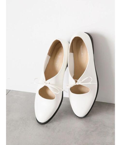 甲のリボンがポイントになったメリージェーンシューズ。 低めのヒールで歩きやすく、足の負担を軽減してくれるのも嬉しいポイント◎ シンプルなデザインでスタイリングにも品良く馴染み、オンオフ問わず様々なコーデにも合わせやすいアイテムです。 ※商品画像は、撮影環境やお客様のご利用のPC・スマートフォンのモニター環境などにより実物と色味に差異がある場合がございます。