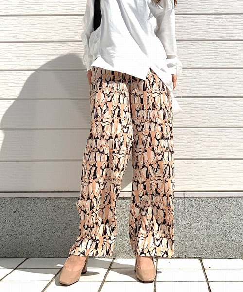 グラフィティプリント柄のリラックスパンツです。 ウエストベルトはバイカラーにしているので、見せても可愛く着られます。 軽い素材を使用しているので、歩くたびに揺れる感じが女性らしさを演出。 シャツやニットなどゆるめなシルエットのアイテムと合わせれば、オトナのリラックススタイルの完成です。 《インフォメーション》 ◆商品のお気に入り登録 完売していても再入荷時に再入荷通知を受け取ることができますので、是非ご登録ください。 ◆ブランドのお気に入り登録 新商品や再入荷などの情報を受け取ることができますので、是非ご登録ください。