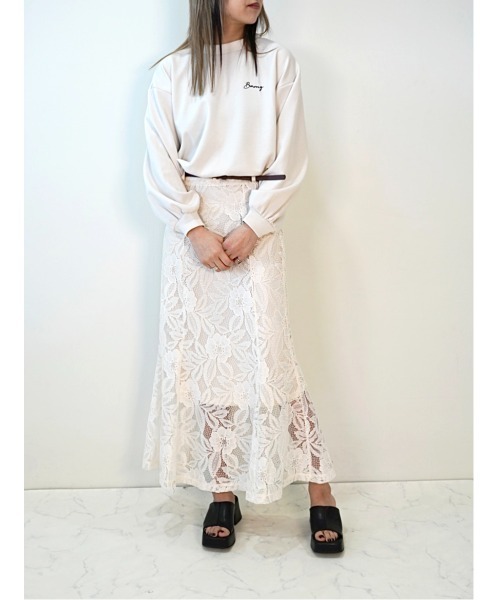 ぱっと華やぐ繊細なレース柄をトレンドのマーメイドスカートに落とし込みました。 歩くたびひらりと揺れる裾が女性らしく目を惹くポイント。 ハイウエストなのでスタイルアップ効果も◎ ウエストは一部ゴム仕様でラクにはいていただけます。 トップスはコンパクトなものを合わせていただきインスタイルがお勧めです。