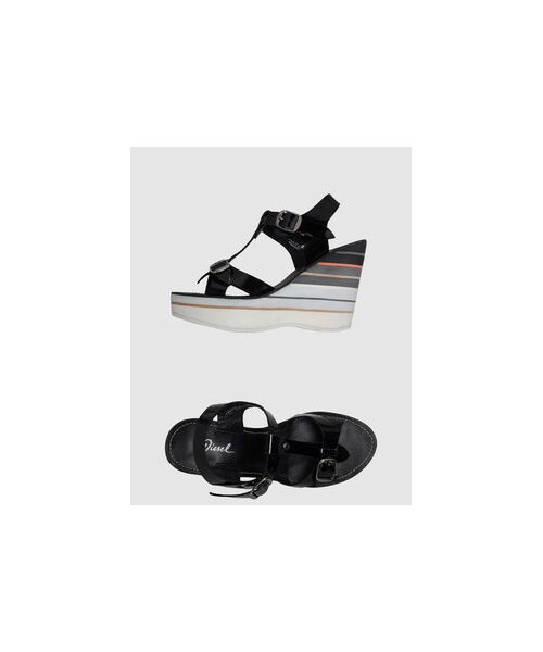 DIESEL Wedges. varnished effect, buckle, rubber sole, solid color, round toeline, no appliqués, covered wedge. 100% Soft leather
