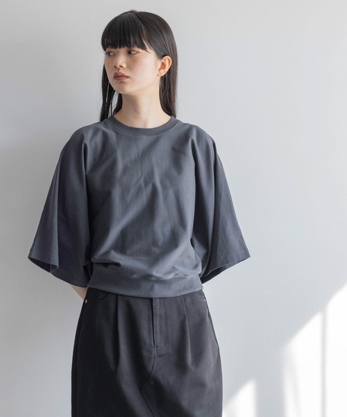 夏に向けてシンプルコーディネートも様になる1枚 ■素材特性■ 60/2の引き揃え天竺を使用。 肌触りの良さと毛羽の目立ちにくい表面感のコットンジャージです。 ■デザイン■ ゆったりとしたドルマンスリーブのショートスリーブプルオーバーです。 裾はリブで仕上げすっきりとした着用感、着丈は程よいショート丈でTシャツ感覚で着回しの効く一枚です。 ■スタイリング■ ゆったりとしたドルマンデザインなのでワイドパンツなどボリュームのあるボトムスがおすすめです。 【yuw】 "やわらかさと、生きる。 カジュアルだけど、くだけすぎず、優しい雰囲気なのに、 凛としている しなやかさとかっこよさのバランスが、ちょうどいいが、実はとってもむずかしい。 このむずかしいバランスをさりげなく整えて、すっと自分のものに取り入れてしまう・・・ そんな大人の女性の心地よさを、結う。 やわらかないい風が吹いています。" ※こちらの商品は、パッケージも商品の一部となりますので、破損している場合、返品・交換を承ることができません。 ※入荷予定店舗:イオンモールレイクタウン、イオンモール大高