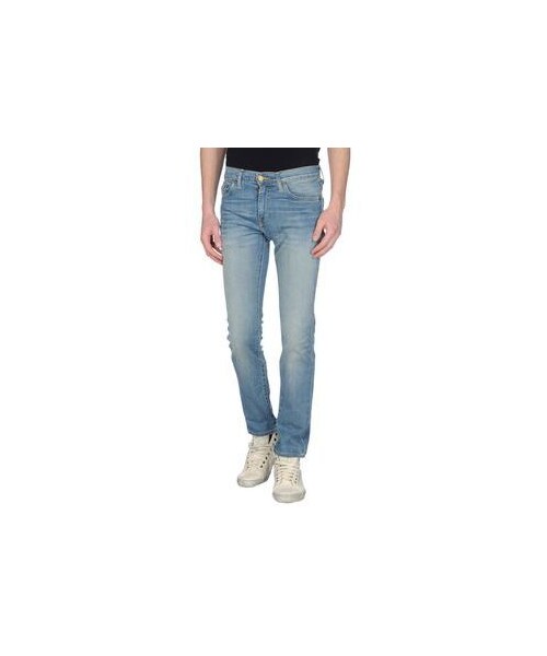 LEVI'S RED TAB Denim pants. denim, solid color, faded effect, mid rise, dark wash, front closure, button, zip, multipockets, logo detail, metal applications, straight leg. 98% Cotton, 2% Elastane