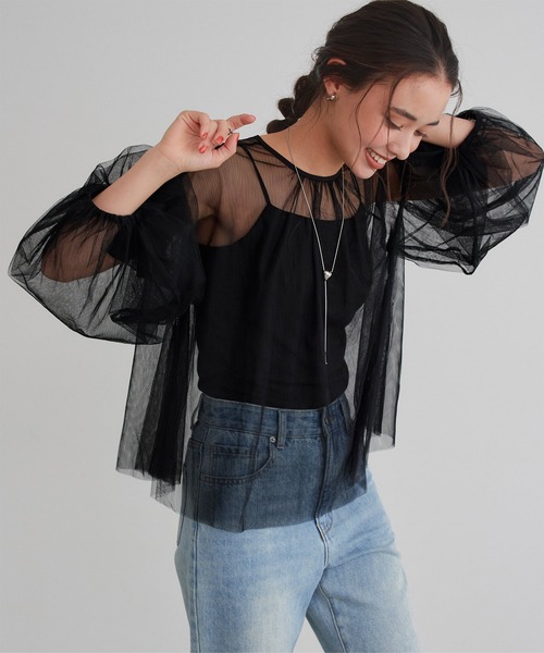 ・ふんわりとしたボリューム袖が女性らしいシアートップス。・Tシャツなどとのレイヤードでもカップ付きインナーなどを着て1枚でも着用可能。・トレンド感のある柔らかいシアー素材が魅力。※当商品は機械による生産の過程上、どうしても"生地を織る際の糸の継ぎ目"や多少の"ほつれ"、他繊維の"混紡"、また、形やサイズや柄に多少の"誤差"が生じる場合がございます。※サイズは、実寸サイズを測っているため多少誤差がでる場合があります。製造工程の関係上、各採寸箇所実寸(平置き)より【約-3cm~+3cm】程度は誤差の許容範囲とさせて頂いておりますので、予めご了承くださいませ。※メーカーより密封状態で入庫し、検品時に再度袋詰めを行っておりますが、素材により染料等の臭いが強い場合がございます。※発送上の状態によって商品がシワになる場合がございます。※商品により色落ち・色移りがある場合がございますので、品質表示をご確認の上、お取り扱いにご注意くださいませ。【伸縮性】あり【透け感】あり