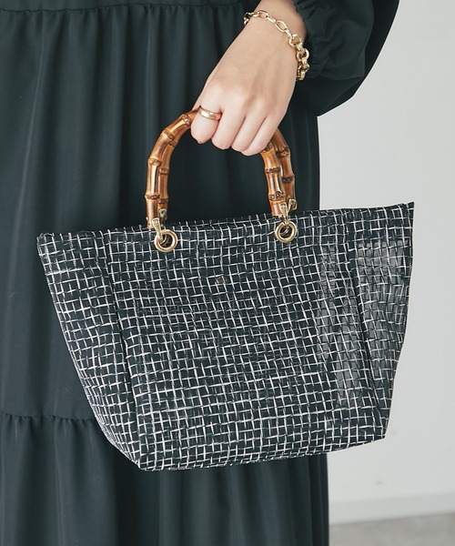トレンドのシアー感でスタイルが一気にセンスアップ 商品ポイント ・ユニークなフォルムにスタイリッシュな バンブーハンドルをプラスされたミディアムサイズのバッグ ・軽量&使いやすいサイズ感 ・ほどよい透け感で春夏らしさ◎ おすすめコーディネート デニムと合わせるとよりクールな雰囲気に♪ カーディガンとパンツを合わせたナチュラルコーディネートは飽きのこない定番スタイル ボートネックのトップスとロングプリーツスカートを合わせたコーデで女性らしいスタイルの完成◎ 素材 ポリエステル・バンブー 【スタッフ着用コメント】 《RINO》 身長:148cm/着用サイズ:F 体型:普通/骨格:ストレート/パーソナルカラー :ブルベ冬 やんわり透け感がポイントになる春夏用バッグ♡ 取っ手のバンブーが高級感を漂わせてくれます! 《KAREN》 身長:162cm/着用サイズ:F 体型:普通/骨格:ストレート/パーソナルカラー :イエベ春 春夏のお出かけに持ち歩きたいシアーな質感のバッグ。 軽いので持ち運びに便利です♪ 《ゆうき》 身長:152cm/着用サイズ:F 体型:ぽっちゃり/骨格:ストレート/パーソナルカラー :イエベ春 しっかり量が入るバッグです。 とっても軽いので荷物が多い私でも安心です。 骨格タイプ ストレート:全体的に立体型で筋肉質。ひざ下はすらっと細め。ボディラインにメリハリがある。 ウェーブ:上半身が薄く、華奢。緩やかな曲線のボディライン。下半身に重心があり女性らしい体型。 ナチュラル:筋肉や脂肪があまり感じられない体型。腰の位置が高く骨や関節が目立ちやすい。 ============================ 【注意点】 ※画像の商品は光の照射や角度、お使いのモニター環境により、 実物と色味が異なる場合がございます。 あらかじめご了承下さいませ。 ============================ 【お買い物をもっと便利に楽しく♪】 『♡』をクリックでお気に入り登録 ・「商品のお気に入り登録」で・・・ ラスト1点や再入荷の通知が届きます。 登録して頂いた商品だけが対象となる、あなただけのタイムセールが開催されることも! ・「ブランドのお気に入り登録」で・・・ 新商品や再入荷など、いち早くブランドのお得な情報を受け取ることができますので、ご登録をおすすめします! ============================