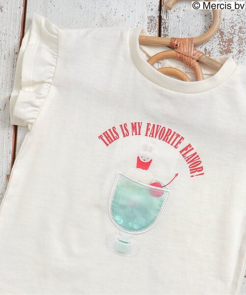 【miffy ミッフィー】 食べものモチーフが好きなお子さまに。ミッフィーとコラボした新しいアートデザインが登場! おいしそうなクリームソーダのなかにはミッフィーが・・・♪ スパンコールを閉じこめたキラキラ光る立体デザインと、袖のフリルでかわいく、涼しげな1枚に仕上げました* 【取り扱い表示】 40℃を上限に洗濯機で洗濯、デリケートアイテムモード、ネット使用、漂白剤を使用禁止、色物は同系の色と一緒に、洗濯後直ちに取出し、タンブル乾燥不可、日陰で吊り干し、低温でアイロン、商業ドライクリーニング不可 【ご注意事項】 この商品は着用中の摩擦や洗濯により毛羽の乱れ、毛羽脱落、毛玉が生じることが有ります。できるだけ美しくご利用頂く為に次のことにご留意下さい。 ○毛玉は毛玉取り器またはハサミで丁寧にカットして下さい。 ○毛羽が他に付着した際はテープやブラシで除去して下さい。 ○他の製品とは洗わず、単独でお洗濯して下さい。 ○タンブル乾燥はお避け下さい。 この製品は特殊加工(スパンコール・ラインストーン・スタッド等)を使用しております。永久的なものではなく、着用中の強い摩擦や洗濯を繰り返すことにより、破損したり、光沢が消失していく可能性があります。できるだけ美しくご利用頂く為に次の事にご留意下さい。 ○ もみ洗い、タンブラー乾燥は避けて下さい。 ○ 脱水はネットに入れ、弱くかけて下さい。 ○ 装飾品にはアイロンを当てないで下さい。 ※商品により多少の誤差が生じる事がございます。あらかじめご了承下さい。 ※ご使用のパソコンやブラウザの環境により、実際の色とは多少異なる場合がございます。 ※モデル着用写真についてはイメージの為、実際の商品とカラーや仕様が異なる場合がございますので、商品画像をご覧ください。 【 SERAPH -セラフ- 】 毎日に新鮮なアクセントが加えられるナチュラルなデイリーウェア。 ファッションの流れに敏感な、おしゃれなママとキッズのために、 クリーンで繊細なデザインとディテールをやわらかく温かみのある優しい素材で表現したブランド。 ボーダー、チェック、ストライプといったシンプルなテキスタイルにトレンド要素をプラス、 ナチュラルな色使いを大切にウェアから雑貨まで、 キッズのカジュアルで少し上品なコーディネートを提案します。