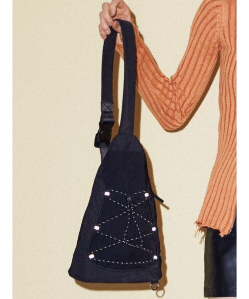サドル型のナイロンショルダーバッグ☆トレンド感のあるワーク要素を詰め込んだミニサイズのショルダーバッグです。フロントにはレースアップデザインを施し、配色の丸紐を使用することでスポーティーなテイストをプラスしています。マットのナイロンと格子状のナイロンを部分使いし、微配色にしているのがポイント!ショルダーバッグとしてはもちろん、ボディバッグとしてもおすすめです。ナイロンを使用しているので、アウトドアにも〇※着用画像はフラッシュの加減で実際の製品と色味等が異なる場合がございますので、生地のズームアップ画像をご確認ください。※ご利用の端末画面の設定により実際の商品と色味が異なる場合がございます。【トクする便利機能】♡商品のお気に入り登録再入荷時、ラスト1点の時、セール開始時にお知らせします。♡ブランドのお気に入り登録新商品や再入荷、セール情報など、ブランドのお得な情報を受け取ることができます。是非ご活用ください!※他のキャンペーンにより、期間中に価格が変動する場合があります。※セールは予告なく終了させていただく場合もあります。