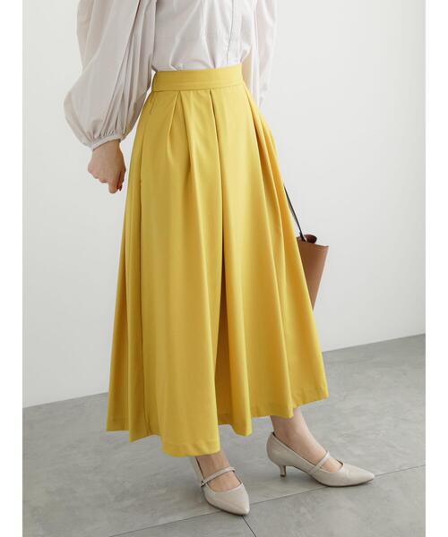 動きのあるフレアシルエットが魅力的なスカート。 タックを入れることでお腹周りはすっきりと見せてくれます。 豊かに広がりをみせ、着こなしに華やかな印象を演出。 大人の女性らしさを演出してくれる洗練ムード漂うアイテムです。 ※商品画像は、撮影環境やお客様のご利用のPC・スマートフォンのモニター環境などにより実物と色味に差異がある場合がございます。 【その他採寸】 F ウエスト:[後ゴム仕様]64cm