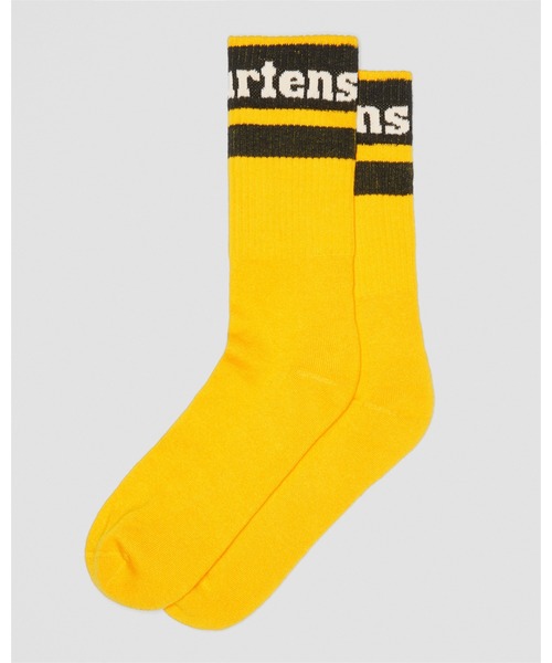 ブランドロゴ入りのリブソックス 肌ざわりの良いコットンを使用した、柔らかな靴下。 ミドル丈で、ブーツやシューズ、ローファーはもちろんサンダルとも相性の良いソックスです。 ドクターマーチンのアイコニックなイエローカラーで、コーディネートのアクセントにぴったり。足首回りにはドクターマーチンのブランドロゴがプリントされています。 ※サイズ S/M: 約22cm-25cm、M/L: 約26cm-29cm