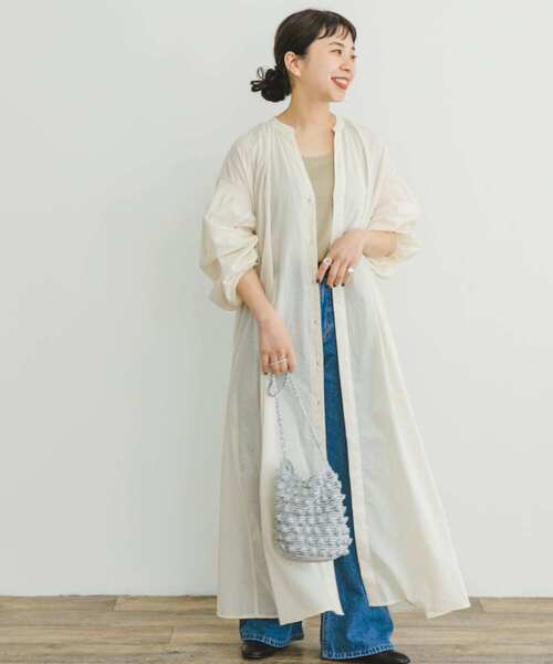 キーネック風の衿元デザインが程よい抜け感を演出してくれるロング丈のワンピース。ナチュラルな風合いのボイル生地で仕立てたシーズンムード高まる1着。全体的にゆとりを持たせたサイズ感がストレスフリーな着心地だけでなく、体型カバー効果も発揮◎インナーにロング丈のキャミソールを付属しているので、透ける心配もなくお召しいただけます。 【2024 Spring/Summer】【24SS】 [インナー] Free : 肩幅25cm / 総丈116cm / 身幅47cm 総重量 : 約360g ※商品画像は、光の当たり具合やパソコンなどの閲覧環境により、実際の色味と異なって見える場合がございます。予めご了承ください。 ※商品の色味の目安は、商品単体の画像をご参照ください。 ▼お気に入り登録のおすすめ▼ お気に入り登録商品は、マイページにて現在の価格情報や在庫状況の確認が可能です。 お買い物リストの管理に是非ご利用下さい。 素材感 透け感 : ややあり(IVOのみ) 伸縮性 : なし 裏地 : なし 光沢 : なし ポケット : あり