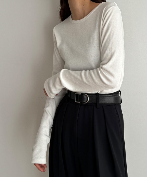 デザイン無地のシンプルなロングTシャツ。程よくフィット感のあるシルエットが体のラインを綺麗に魅せ、女性らしい印象に。素材上質なコットンを使用したリブ生地で、肌あたりが良く着心地抜群。コーディネートデニムに合わせたカジュアルスタイルや、スラックスなど綺麗めなパンツにも◎スタイルを選ばずどんなボトムスとも相性が良く、デイリーユースにおすすめの1枚です。El mar(エルマール)El mar はスペイン語で『海』海に向かうときはだれでもワクワクする。洋服を選ぶとき、袖を通すとき、同じように心が踊るアイテムを提案したい。そんな『ワクワク』な気持ちを込めて El mar はデビューしました。-------------------------------------生地の厚さ:厚い〇〇●〇〇薄い伸縮性:あり透け感:なし/WHTややあり裏地:なし光沢:なし水洗い:可-------------------------------------取扱い:手洗い濃色は色落ちする可能性がありますので、他の物とのお洗濯はお避けください。蛍光増白剤の入っていない洗剤をご使用ください。長時間の水への浸漬はお避けください。洗濯後は速やかに形を整えて陰干しをしてください。水洗いの後の乾燥機のご使用はお避けください。この商品は素材の特性上、ピリング(毛玉)が出る場合がございます。クリーニングネットを使用してください。アイロン掛けの際は、あて布をご使用ください。※取り扱い及びお手入れ方法については、商品について取扱表示、洗濯表示にてご確認下さい。※照明の関係により、実際よりも色味が違って見える場合があります。またパソコン・スマートフォンなどの環境により、若干製品と画像のカラーが異なる場合もございます。※商品の色味は、商品アップ画像をご参照ください。
