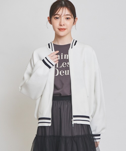 ◆◇◆2024 Spring/SummerCollection◇◆◇ ハイゲージ・キレイめ合繊の接結編で編み立てたニット素材のMAー1。 スウェットライクな厚みで着心地も良く、カーディガン感覚で羽織れるスイッチシーズンにぴったりなライトアウター。 ゆったりしたサイズ感と上下開閉可能な逆開ファスナー仕様で、コーデに今っぽい抜け感をプラスしてくれます。 袖口・裾のラインにラメ糸を引き揃え、胸にはブランドオリジナルのエンブレム刺繍を入れて少しの女性らしさもプラス。 チュールスカートやミニスカート等、可愛らしいボトムとのミックスコーデがオススメ。 ・‥…━…‥・‥…━…‥・‥…━…‥・‥…━…‥・‥… ▼サイズ 36/着丈59.0cm、肩巾55.0cm、身巾60.0cm、裾巾48.0cm、袖丈51.0cm、袖巾20.5cm、袖口巾8.0cm ▼ファブリック ----------------------------- 透け感: なし 伸縮性: あり 裏地:なし 光沢:なし 生地の厚さ:やや厚手 洗濯:ドライクリーニング ----------------------------- ※サイズ表記につきましては、商品によって同サイズや同色等であっても各商品毎に誤差が生じる可能性がある為、サイズ表記はあくまでも目安としてご参照ください。 ※モデル着用アイテムはサンプル商品の為、実際よりサイズや色が異なる場合がございます。サイズはサイズ詳細等にてご確認下さい。 ※モデル着用カラーは、撮影環境の兼合いにて、実際のカラーと異なって見える場合がございます。商品カラーに関しましては、物画像をご参考ください。 ※取り扱いについては、商品についている品質表示でご確認ください。 ※商品画像はサンプルのため、色味や仕様変更がある場合がございますので予めご了承ください。 ※画像と柄の位置が異なる場合がございます、ご了承下さい。 ※撮影の照明状況やパソコンなどの環境により、若干製品と画像のカラーが異なる場合もございます。予めご了承ください。