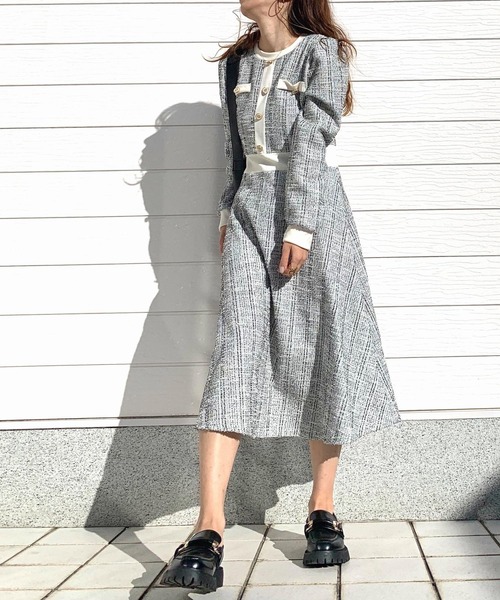 【WEB限定アイテム】特別な会食やセレモニーなどのきちんと感を要する場面にもぴったりなミディアム丈のツイードワンピースです。ストレッチの効いた素材なので着脱も楽ちんです。メリハリのあるフィット&フレアの美シルエット。一枚で即クラシカルレディな装いが叶う優れものです。《インフォメーション》◆商品のお気に入り登録完売していても再入荷時に再入荷通知を受け取ることができますので、是非ご登録ください。◆ブランドのお気に入り登録新商品や再入荷などの情報を受け取ることができますので、是非ご登録ください。