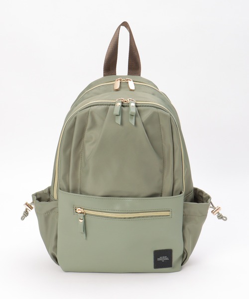 フロント部分にタックをよせた、正面からの見た目がかわいいリュック。10個のポケット付きで小物を効率的に収納できます。【素材】ポリエステル&合成皮革の混合使用。【デザイン】収納アドバイザー監修の10ポケットリュックです。サイドがトレンドのドロスト仕様に進化して登場!【ikkaポイント】・多機能・多収納・内側ポケットが見えやすいように配色使用・キラっと光るゴールドカラーの付属・底面が安心な合成皮革使用