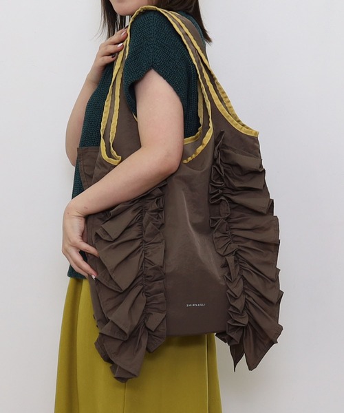 ボリュームフリルがインパクトのトートバッグ!口元テープ色との配色、ランダムなボリュームフリルがポイントのバッグ。A4サイズがしっかり入るサイズ!内装には3つのポケット完備で容量が大きくても細かい物の収納はできます。メインバッグとしても、サブバッグとしてもご使用頂けるデザインになっています。店舗へお問合せの際は下記の商品番号をお伝えください。商品番号:24122-11012※商品の画像はサンプルのため、実際の製品とは、仕様や加工、サイズ等が若干異なる場合がございます。◆注意事項◆可能な限り実物に近いカラーにて掲載しておりますが、ご使用のパソコンやスマートフォンなどの端末の環境によって、実際の色味と異なって見える場合がございます。予めご了承ください。サンプルで撮影している商品もございます。その場合、実際の商品とは色味・仕様が異なる場合がございますので、予めご了承ください。◆SMIRNASLI◆【SMIRNASLI/サミールナスリ】日常のひと時が輝けるようにヘルシーでエシカルに自然体で自分のスタイルと遊び心を持った大人の女性へ気持ちにフィットする物を提案します。■サイズ感:A4サイズ対応・500mlペットボトル可■ポケット:内側3ヶ所■重量:約240g■サイズ:幅33cm/高さ38cm/ハンドル立上り27cm/口開き40cm= お気に入り登録がおすすめ!=お得な情報をいち早くお届け致します。アイテムをお気に入り⇒ SALE START / 完売COLOR再入荷 / LAST1点 etc...ブランドをお気に入り⇒新商品 / 再入荷 /クーポン・セール情報 etc...