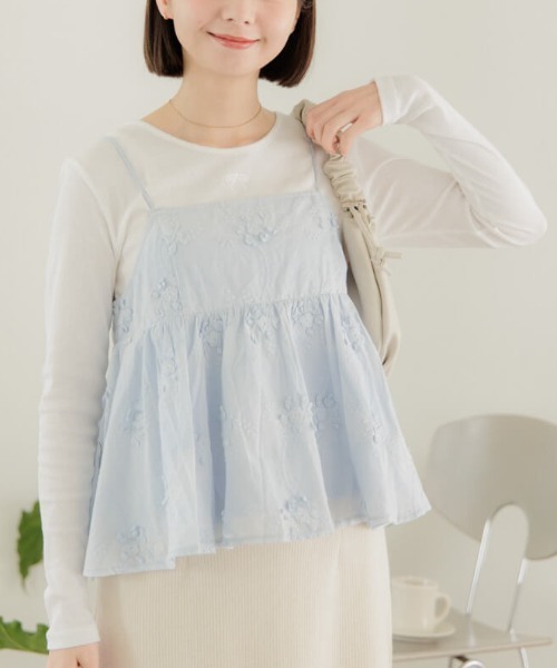 ■デザインフロントのさりげないリボン刺繍がアクセントのカットソートップス♪コンパクトなサイズ感でキャミワンピースやジャケット類などのインナーにぴったりな一枚♡身頃のカラーと同色の控えめなリボン刺繍が、トレンドを抑えつつ着まわしやすさも叶えます。華やかな印象を作る透明感のある春カラーも魅力的♪デイリー使いや女子会・ピクニックなど幅広く活躍するアイテムです。melting tweed jacket、melting tweed bustier、eden lace bustier、layered collar blouseなどとのレイヤードスタイルが◎■flower/フラワー「love&joy」をコンセプトに、商品に愛を込め、お客様に楽しんでいただけるような、ナチュラルでガーリーなアイテムを提案していきます。【お買い物を上手にお楽しみいただくためのPOINT2つ】◎ 購入ボタン横の ♡ (ハートマーク)をクリック! 完売カラーの再入荷通知、残り1点の通知、セールの通知を受け取れます。 (クリックまたはタップで商品のお気に入り登録♪)◎ ショップのトップページにある ♡ (ハートマーク)「お気に入りショップに追加」をクリック! 新商品や再入荷等、いち早くブランドのお得な情報を受け取れます。 (ブランドのお気に入り登録♪)