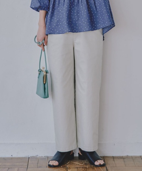 ーーー伸縮性がよく、穿き心地の良いスッキリとしたストレートパンツ。お客様からの『穿き心地の良い人気のサブリナパンツの素材で、別のシルエットが欲しい』とのお声をいただき実現したアイテムです!伸長回復率がよく、気になる膝抜けも短時間で元の形に戻る優れたストレッチ素材を使用。ヒップ回りは程よくゆとりがありながらも、もも周りから裾までスッキリとしたストレートシルエットで綺麗にご着用いただけます。ウエストはイージーなゴム仕様+紐で調節可能なので、ストレスフリー♪ハイストレッチで穿き心地が良く、程よいハリ感がよりスッキリと見せてくれます!ーーートップスを選ばず着用でき、オンにもオフにも使えるのも嬉しいポイント◎スッキリしたシルエットなのでレイヤードパンツとしての着方もおすすめです!