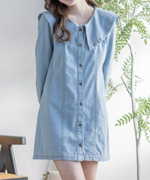フェミニンカジュアルな刺繍入りビックカラーデニムミニワンピース 【デザイン】 去年も人気だったデニムミニワンピースが刺繍入りになって再登場♪ ビックカラーがついているので小顔効果もあります! 1枚でお洒落見えするので、絶対に抑えたいアイテムです! 【素材感】 ハリがあり型崩れしにくいデニム生地 伸縮性:なし/ 透け感:なし / 裏地:なし/ウエストゴム:なし 水洗いによる洗濯可 / ドライ・ウェットクリーニング可 【コーディネート】 1枚で着ていただくのがおすすめ◎ ブーツやキャスケットなど、雑貨合わせで雰囲気変えて楽しんでいただけます! 【※お取り扱い上のご注意】 1:モニター環境等により実際の商品と多少色味が異なって表示される場合がございます。予めご了承下さい。 2:屋外で撮影された商品は、天候により多少実際のカラーと異なる場合があります。商品のカラーはトルソー(マネキン)の商品画像をご参照ください。 3:濃い色の商品は、お洗濯や摩擦等による移染にご注意ください。 4:末永くご愛用頂く為に、アテンションタグ・洗濯ネームを必ずご確認の上、着用又はお取り扱い下さい。 5:生産時期により、色、サイズ、デザイン、素材の質感が多少が異なる場合がございます。あらかじめ御了承下さいませ。