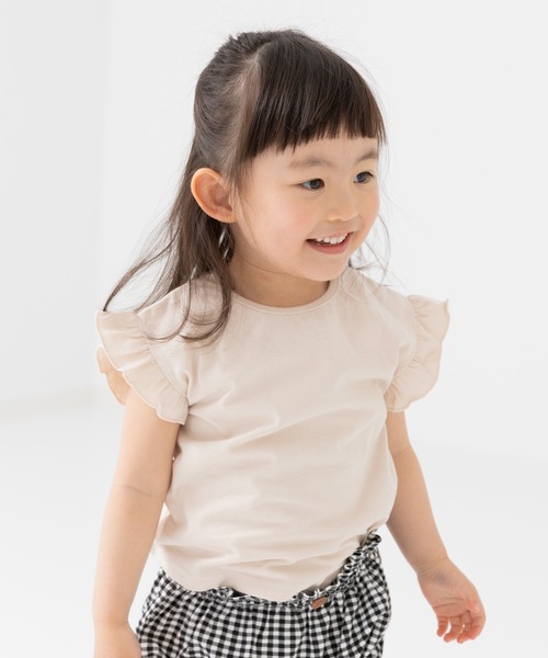 甘すぎないフリル袖がかわいい無地の袖フリルTシャツ!肌ざわりの良い安心の綿100%素材!