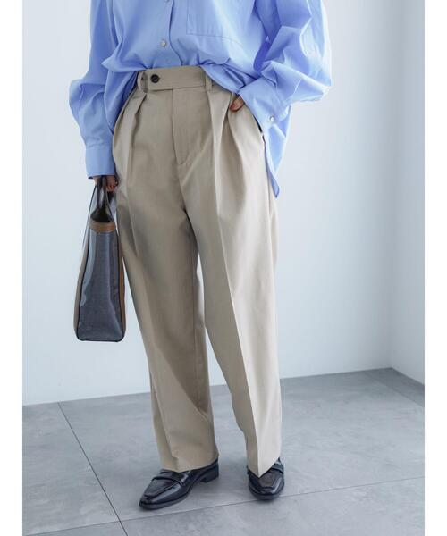 ダブルタック入りでシルエットをすっきり見せるスラックスパンツ。 ワイドタイプで穿き心地も良く、センタープレスを入れることできちんと感のある着こなしに。 オンオフ問わず様々なシーンにも活躍してくれます。 同素材のジャケットとセットアップで着用でき、品良くスタイリングが決まるアイテムです。 【その他採寸】 S ウエスト:[後ゴム仕様]64cm M ウエスト:[後ゴム仕様]65cm ※商品画像は、撮影環境やお客様のご利用のPC・スマートフォンのモニター環境などにより実物と色味に差異がある場合がございます。 ★《お気に入り登録》でお得な情報をGET★ ① 商品ページ内のハートマークをクリック! ② 以下通知が受け取れます! 「再入荷」「ラスト1点」「特別セール」etc.. \ブランド、ショップのお気に入りも是非!/