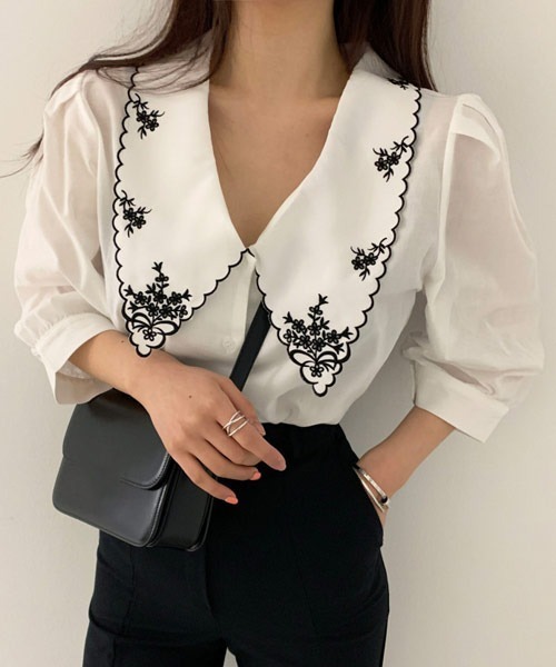 刺繍襟が大人っぽさと可愛らしさがありデニムと相性バッチリなデザインです♪ 【i-dare】 スマートなシルエットで女性らしさを感じる印象的なアイテムで、 ベーシックなアイテムとの組み合わせが良くデイリーユースに着られます。 ●サンプル品を使用している事もあり、サイズ感など多少異なる場合もございます。 ●パソコンのモニター、撮影の光量などにより画像と実物の色味が異なって見える場合がございます。 ●入荷時期・追加生産により画像・詳細と多少異なる場合がございます。 ■商品によって生地の他繊維の混紡、縫製の多少のほつれなどがある場合がございます。