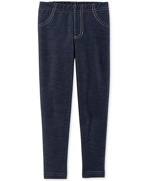 A trendy pair of leggings in stretchy denim for your little fashionista. By Carter's. Cotton/polyester/elastane Machine washable Imported Carter's toddler girls' leggings Elastic at waist; pull-on design; solid hue Contrast stitching at seams