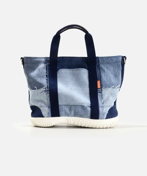 ユーズドデニム×トートバッグ ユーズドデニムの巻き上げソールトートバッグ。 アメリカで廃棄予定だったユーズドデニムを回収し、日本国内で洗浄・分解・パッチワークして蘇らせた素材を使用。 裁断面をあえて切りっぱなしにし、ヴィンテージ感を演出。 オレンジのタグがアクセントになっています。 内面に敷いたクッション性のあるインソールはSPINGLE に使用しているものと同素材で、荷物への衝撃をやわらげます。 ※パッチワーク生地のため、外観は商品毎に異なります。 素材:ユーズドデニム(パッチワーク生地) 外側:スマホやパスケース等を収納できる小型ポケット 内側:ファスナー付きポケット、ボトルホルダー 【SPINGLE / スピングル】 2024年1月よりSPINGLE MOVE(スピングルムーブ)からSPINGLEとしてリニューアル。 履き心地のよさ、一貫した国内での生産にこだわった職人のモノづくりを根底にプレミアムなレザースニーカーを数多く展開。 多くのメゾンブランドのOEMも手掛けるファクトリーから生まれたブランド。 代名詞である唯一無二の巻き上げソールなどのゴム底の製造から、バルカナイズ製法という国内でも僅かな工場でしかできない希少性の高い加硫缶(窯)を用いて生産。 日本人のための日本のシューズ。 オリジナリティとJapanメイドならではのクラフトマンクオリティを感じられるシューズをお楽しみください。