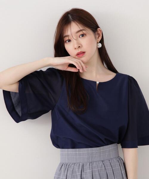 【商品特徴】さらりとした清涼感のある素材で着心地良く仕上げた、きれいめ通勤ブラウスです。フロントにはワンポイントでパール調をつけ、女性らしい華やかなポイントに。袖は同色のシアー素材を合わせ、今年らしいディテールを演出。フレアスリーブなので、一枚で着映え感バツグンのアイテムです。【スタイリング】フレアスカートにウエストインすると、メリハリ感のある女性らしい着こなしが叶います。<商品のお気に入り登録>お気に入りアイテムの値下げ・再入荷・在庫1点などの通知を受け取ることができる便利機能ですので気に入ったアイテムはお気に入り登録がおすすめ!<ショップのお気に入り登録>新商品や再入荷、セール、クーポン配布などお得な情報を受け取ることができます。●撮影はサンプル商品で行っている為、仕様とサイズが異なる場合がございます。●スタジオ及び屋外で撮影した着用画像は、光の当たり具合で色味が違って見える場合があります。予めご了承ください。